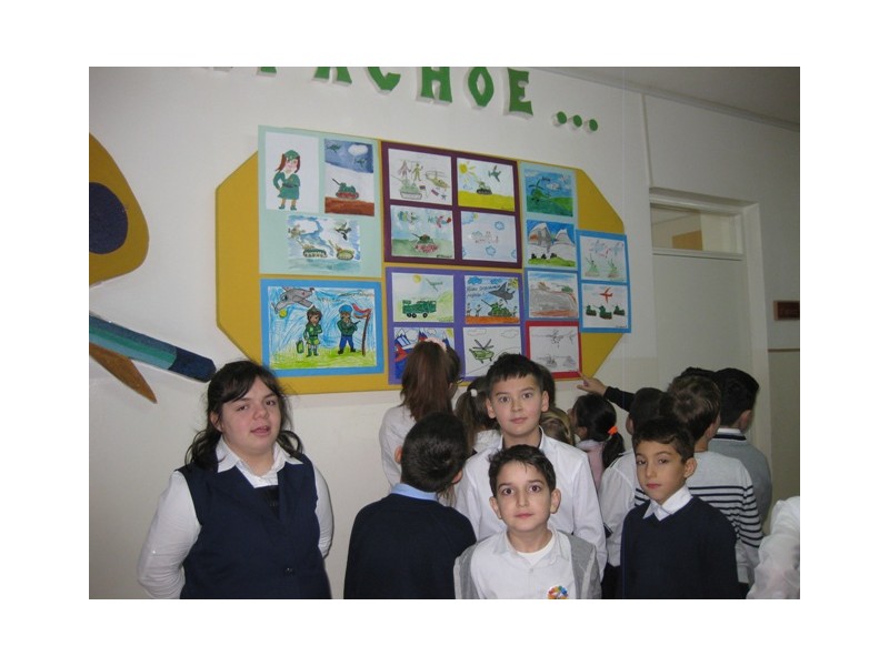 11 декабря в начальной школе была организована выставка рисунков на тему «Есть такая профессия – Родину защищать», на которой были представлены рисунки с изображением разных военных профессий, боевой техники, наземного, воздушного и водного транспорта. Юные художники, под руководством учителя рисования Коваленко Е.Н., с увлечением подготовили работы на заданную тематику.