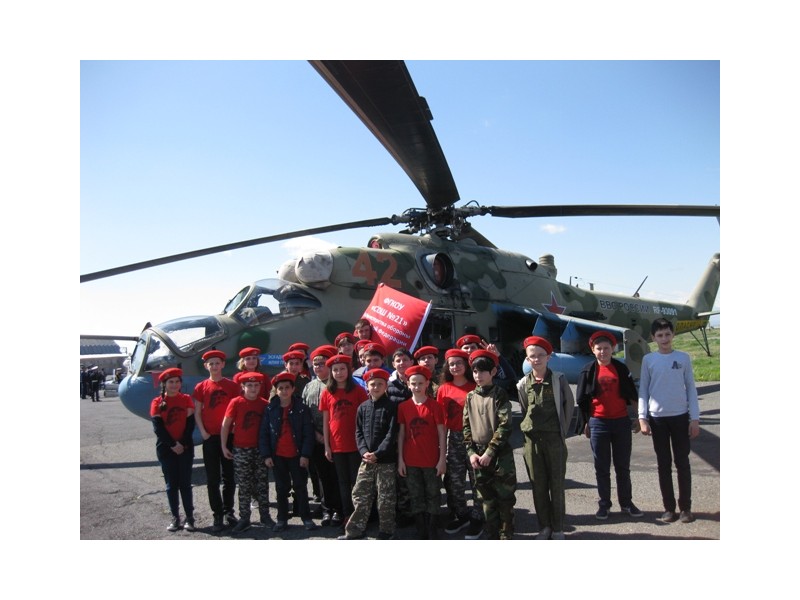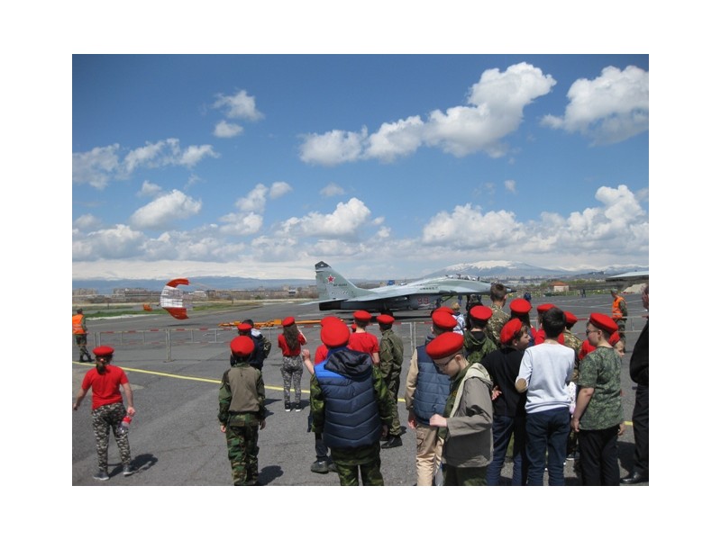11 апреля юнармейцы школы посетили авиабазу «Эребуни», где был показан воздушный бой с принуждением противника совершить посадку на аэродроме «Эребуни». Были показаны фигуры высшего пилотажа, а также организован смотр военной техники и вооружений.