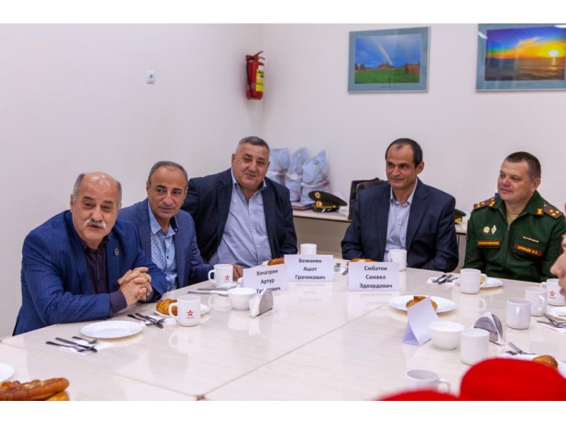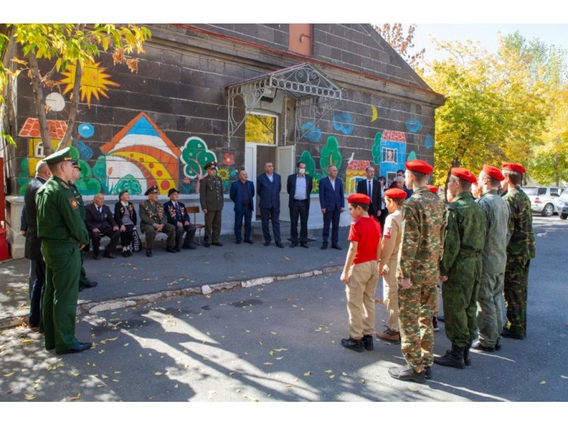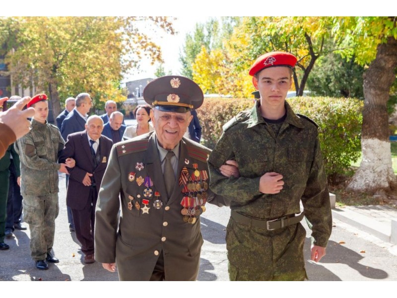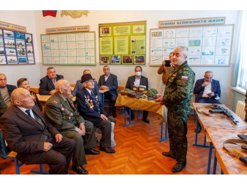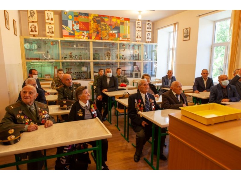 После небольшой экскурсии по школе под руководством директора Хачатурян Светланы Дмитриевны почётные гости, учителя и школьники собрались в столовой, где за чаем поговорили о прошлом и настоящем. Среди участников Великой Отечественной был 99-летний Агван Погосян, а также Нерсес Симонян, освобождавший Севастополь, подполковник Генрих Харатян, который закончил войну в Манчжурии, и пережившая ленинградскую блокаду Галина Петухова. Аппаратом военного атташе при российском посольстве в Ереване им были вручены подарки, а также необходимые медицинские принадлежности, как, например, слуховой аппарат.