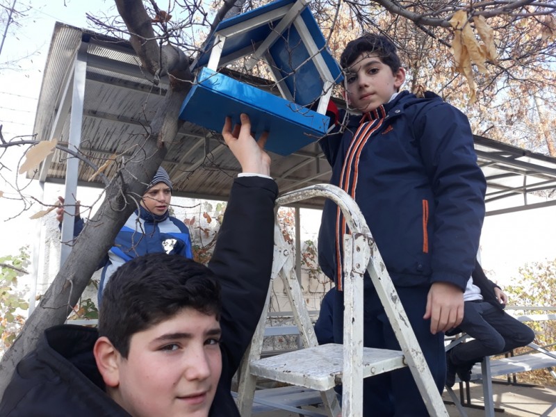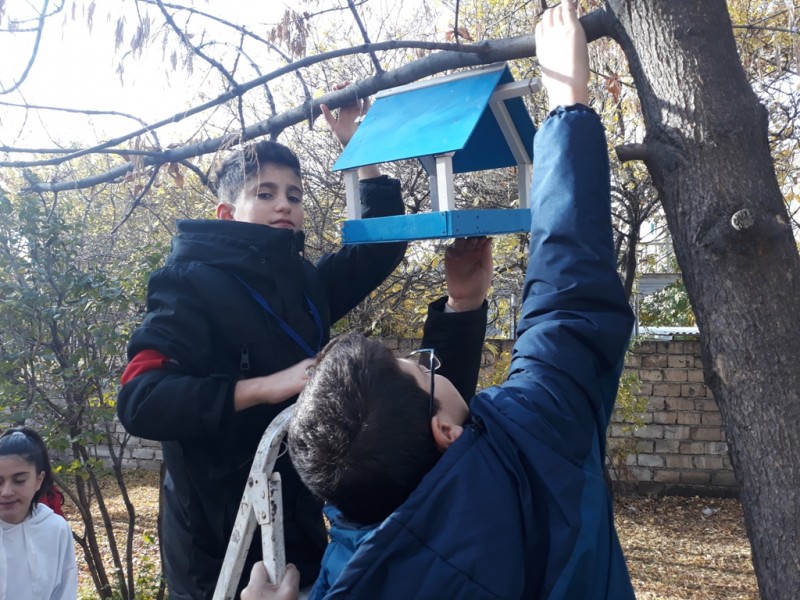 В рамках ежегодной школьной акции «Накормим птиц зимой» под руководством учителя технологии Манукяна Аветиса Мелконовича ученики 6 «Б» класса со своим классным руководителем Стадник Юлией Владимировной подготовили и повесили на территории школы кормушки для птиц.