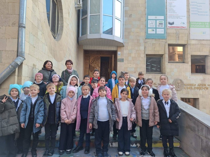 Продолжением послужила поездка в Национальную детскую библиотеку имени Хнко–Апера. Дети познакомились с работой библиотеки, книжными новинками, посмотрели развивающий мультфильм, послушали сказку.