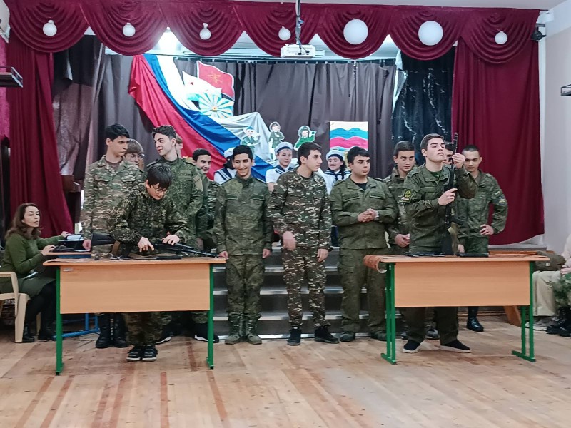 Ведущий концерта- ученик 10 "Б" класса Седракян Эмиль, рассказал об истории праздника. С музыкальными подарками выступили школьный хор "Весёлые нотки" под руководством учителя музыки Галстян Р.С. и вокальный ансамбль "Звуки музыки" под аккомпанемент руководителя ансамбля Сарафяна К.К.. Были исполнены военно-патриотические композиции- песни "Моя армия", "Служить России", "Идёт солдат по городу".