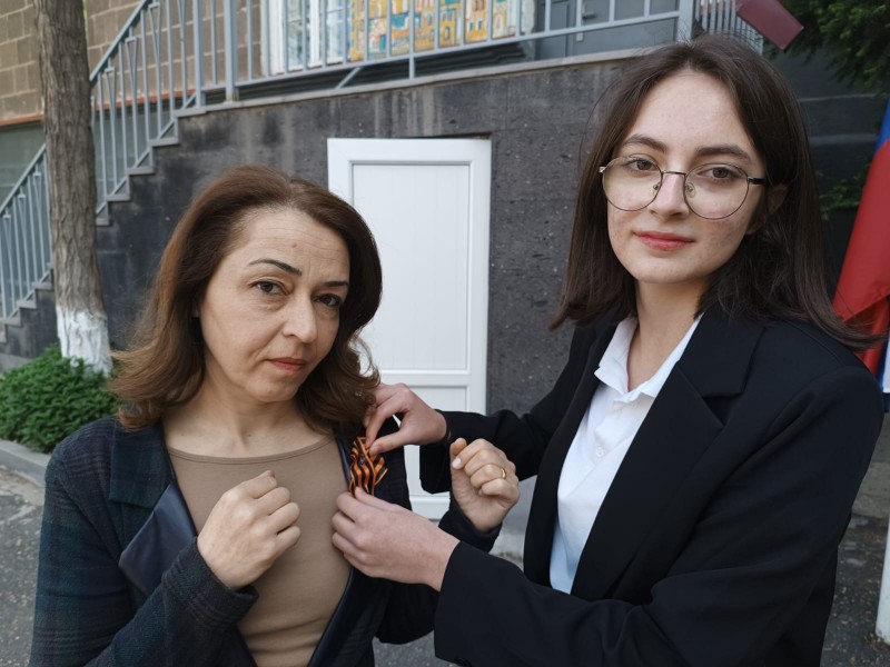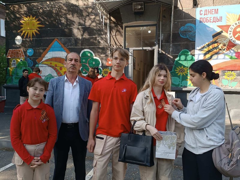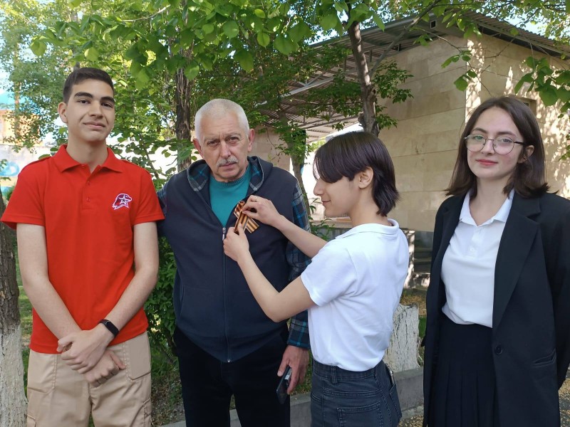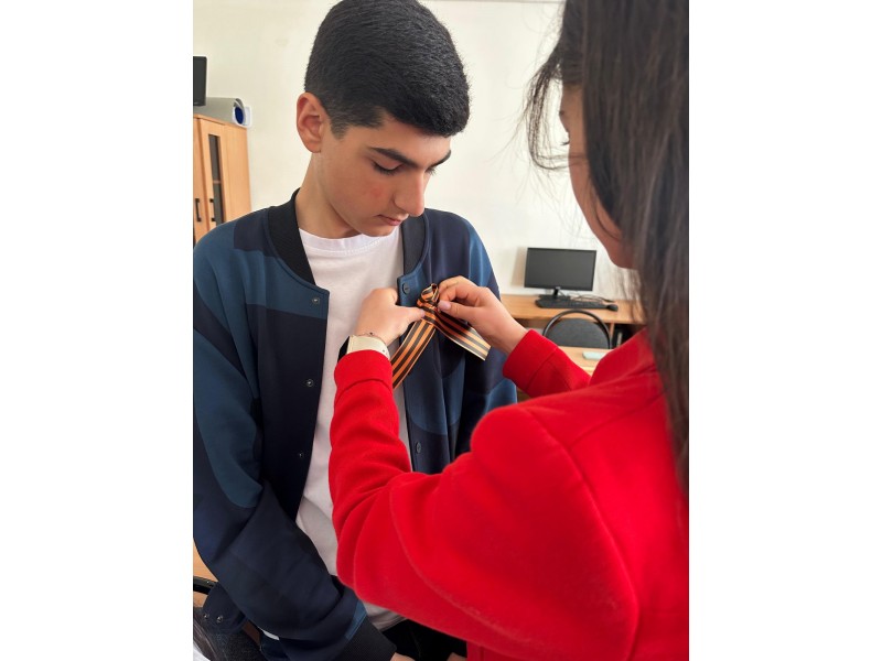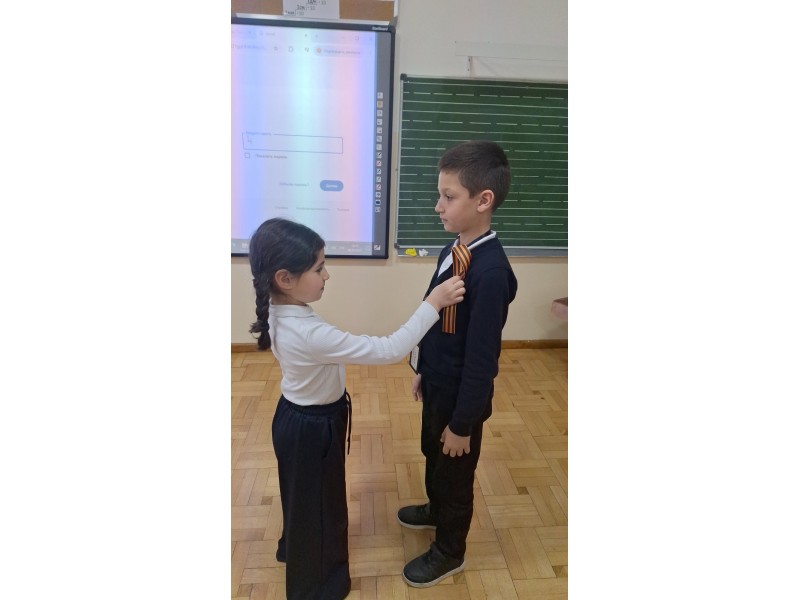 В течение нескольких дней ребята, учителя, родители прикрепляли друг другу в школе георгиевские ленты - символ воинской славы и памяти о подвигах советских солдат в Великой Отечественной войне.