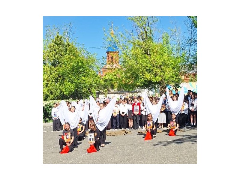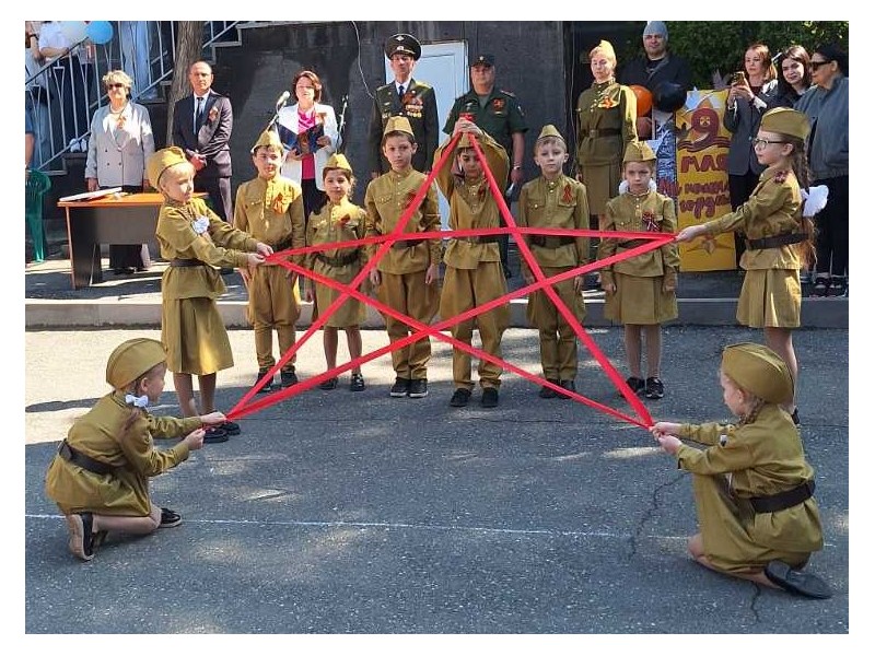 Трогательности и символичности добавили празднику растянутая из лент учениками 2 "А" класса Красная звезда, танец 6 "А" класса под известную песню "Журавли", победная "Катюша" в исполнении Эмилии Сарафян.