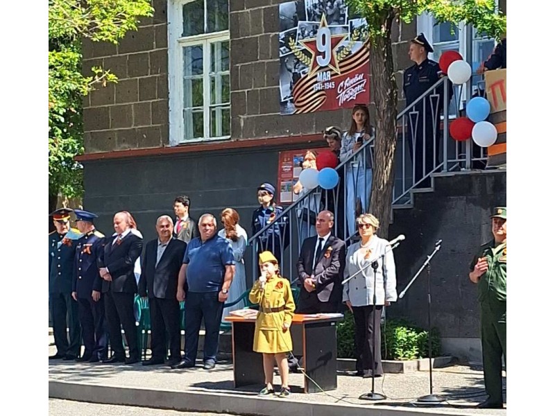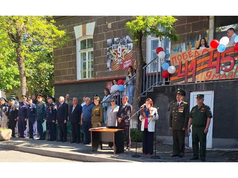 После Гимна Российской Федерации и минуты молчания в память о погибших Героях нашей Родины торжественное мероприятие было открыто директором школы Хачатурян С.Д., с поздравительной речью выступил Чрезвычайный и Полномочный посол РФ в РА Копыркин С.П.