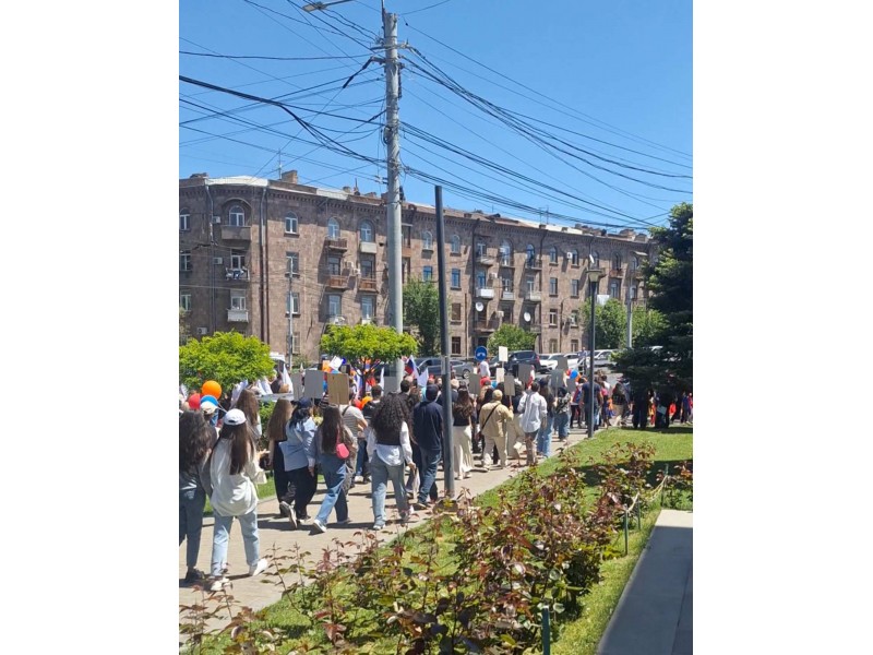 Учащиеся вместе со своими семьями, друзьями и близкими приняли участие в памятном шествии от Храма Святого Креста до Вечного огня в Парке Победы г.Еревана. Бок о бок с активистами общественных организаций, представителями духовенства, диппредставительств, военных ведомств прошли ребята с портретами своих Героев Великой Отечественной войны- прадедушек и прабабушек.