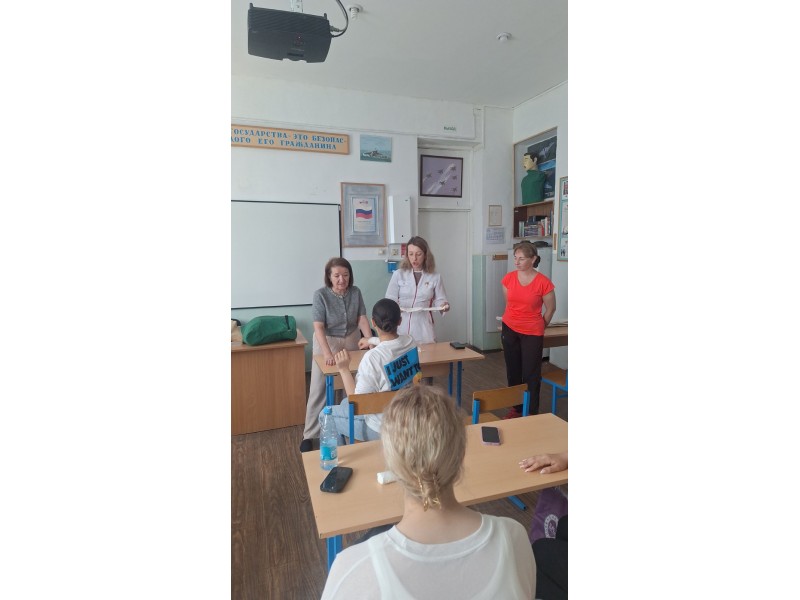 Для девушек ежедневно учителем ОБЗР Стадник Ю.В. проводилась зарядка и отработка навыков оказания первой (доврачебной) помощи: подробное изучение порядка оказания первой помощи; перечня состояний, при которых оказывается первая помощь; перечня мероприятий по оказанию первой помощи и последовательности их проведения. Изучалась теория и оттачивалась практика наложения повязок (бинтование ног, рук, головы и т.д.), наложения кровоостанавливающего жгута, первая помощь пострадавшему при переломах, искусственное дыхание и непрямой массаж сердца - СЛР (сердечно-лёгочная реанимация) на тренажёре. Девушки также сдали нормативы по физической подготовке и приняли участие в эстафете по оказанию первой помощи.