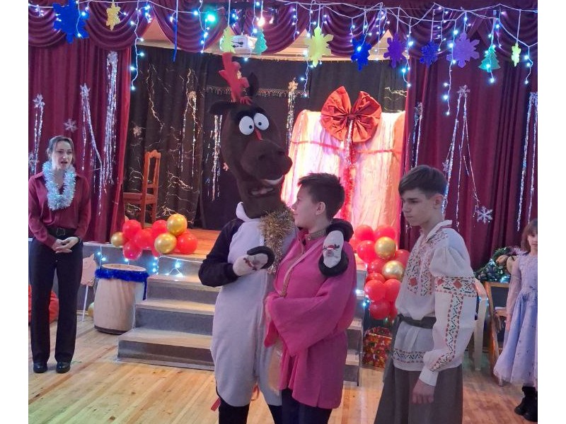Конь Юлий и богатырь Алёша, красны девицы и Соловей Разбойник, Дед Мороз и Снегурочка порадовали ребят своим представлением, конкурсами, зажигательными танцами и подарками, а те, в свою очередь, исполнили для присутствующих песни, подготовленные и сымпровизированные стихи и новогодние пожелания.